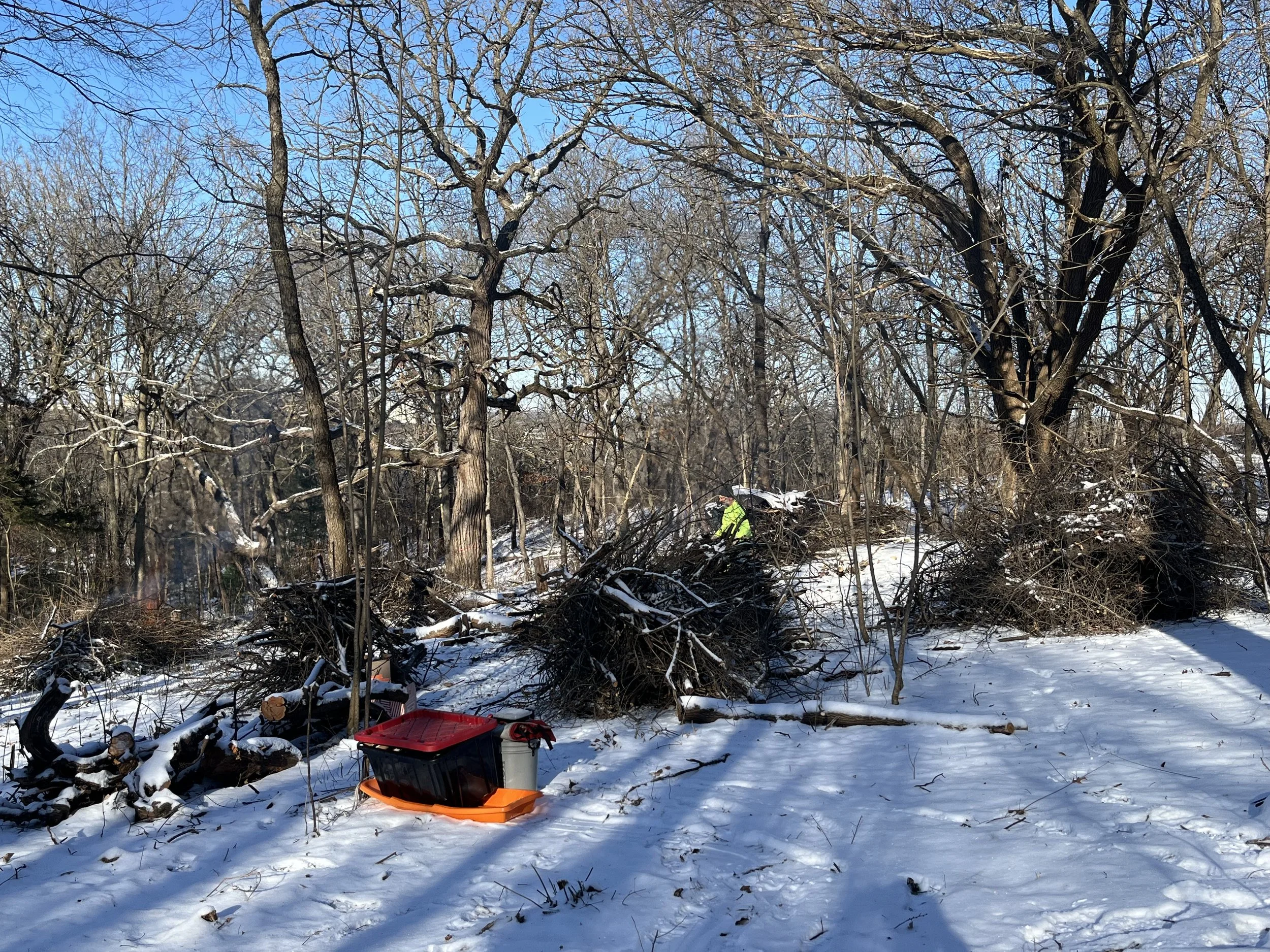 Early January snowfall made it safe for FoHP volunteers to burn the brush cut at the November Workday. Burning the brush in place adds needed nutrients to the soil.